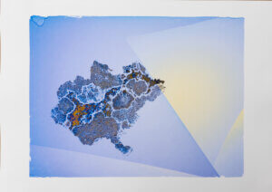 Mossen vormen fascinerende structuren, door mensenhand gemaakte gebouwen hebben strakke lijnen. Beide vind ik interessant, maar van een totaal andere orde. Kan ik de tegenstelling vertalen in beeld? Zie daar mijn vertrekpunt voor deze serie. Een collage experiment met vorm, lijn en kleur maar ook met nieuw materiaal. Naast papier heb ik ook bij wijze van nieuw proces acrylhars gebruikt om pigment transfers mee te maken, wat mooie objecten opgeleverd heeft.